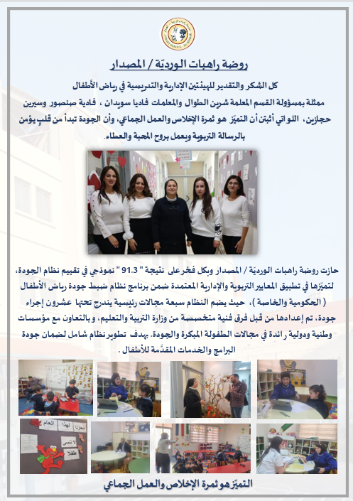 نتائج تقييم تطبيق نظام ضمان جودة رياض الاطفال الحكومية والخاصة